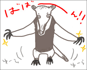 そういえば、以前テレビで見たコアリクイは、威嚇ポーズをとったものの勢い余ってそのまま後ろにひっくり返ってジタジタしてました。