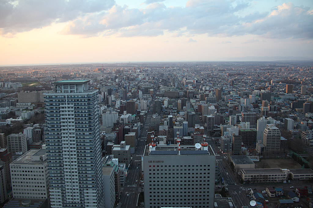 札幌駅に隣接した札幌で一番高い構築物になります。駅と隣接しているために、中々の風貌です。今回は、日没前に展望フロアに上り、昼間、夕方、日没、夜間と撮りわけてみました。展望フロアからは、札幌市内はもちろんのこと、小樽付近まで見渡すことができ、展望を十分に楽しむことができます。