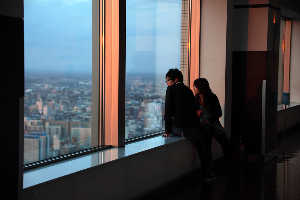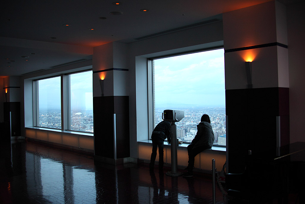 JRタワーの屋上からの撮影です。昼間→夕方→夜間という一番おいしい時間を選択して撮影に向いました。札幌市内を一望できますし、遠くは小樽まで見渡せます。大倉山に消えていく夕日をお楽しみ下さい。