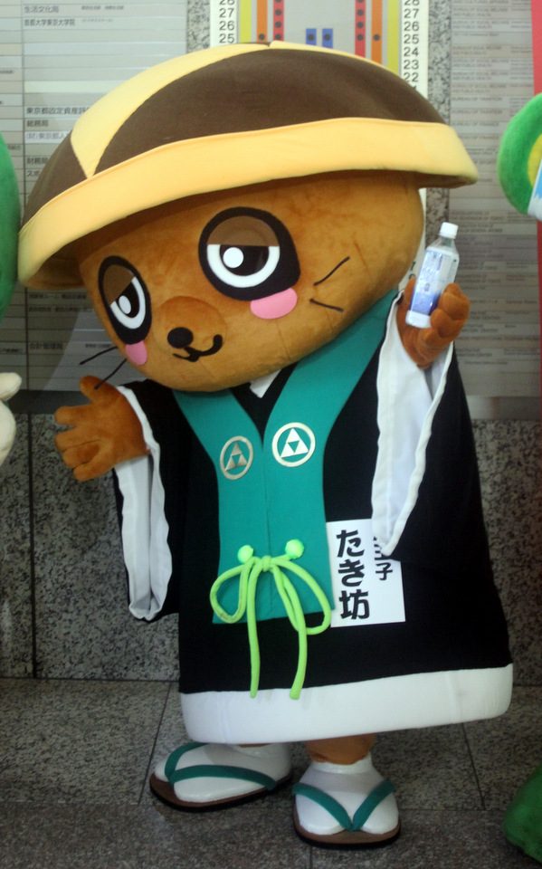 | だいたい400才、人間で言うと8才の男の子。 滝山城址に住み、大暴れしていた妖怪タヌキだったが、お寺に忍び込んだところ法力の強い「おしょさん」に捕まり妖力を封印されてしまった。 妖力を失いションボリていたところをみかねたおしょさんが弟子にとり、「たき坊」と名づけ修行が始まった。 |
