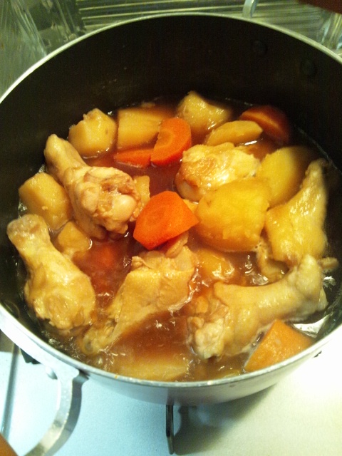 材料:手羽元・ジャガイモ・にんじん・ゆで卵・しょうゆ・みりん・酒・