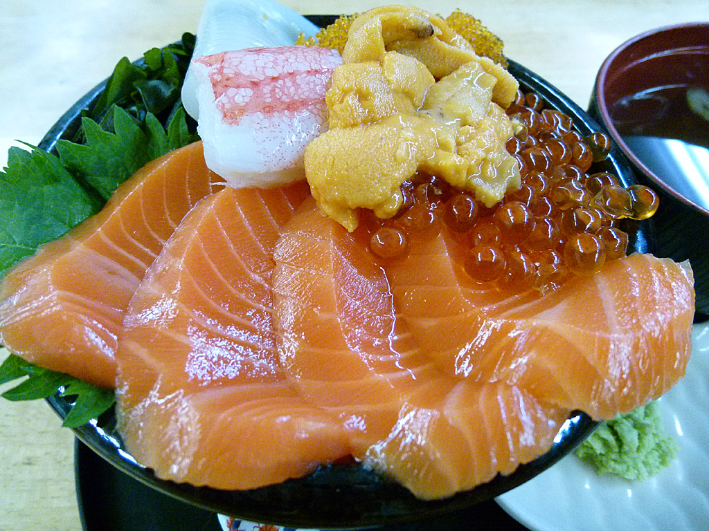 今度は札幌場外市場で食べた海鮮丼です。鮭が多くちょっとおなかに堪えますが・・。総じて海産物は非常に美味しいです。