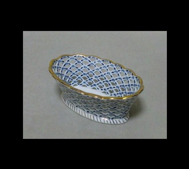 染付け金彩 細工物の陶製 バスケット 小物入れ 検:陶箱