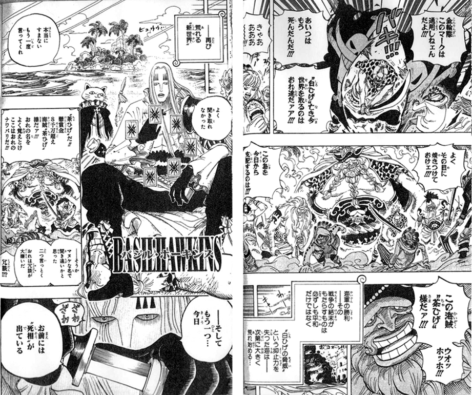 第594話“メッセージ”(60巻)でバジル・ホーキンスに殺されたかと思いきやケンタウロスで復活してたんですねー!トラファルガー・ローが手術したのでしょうか?