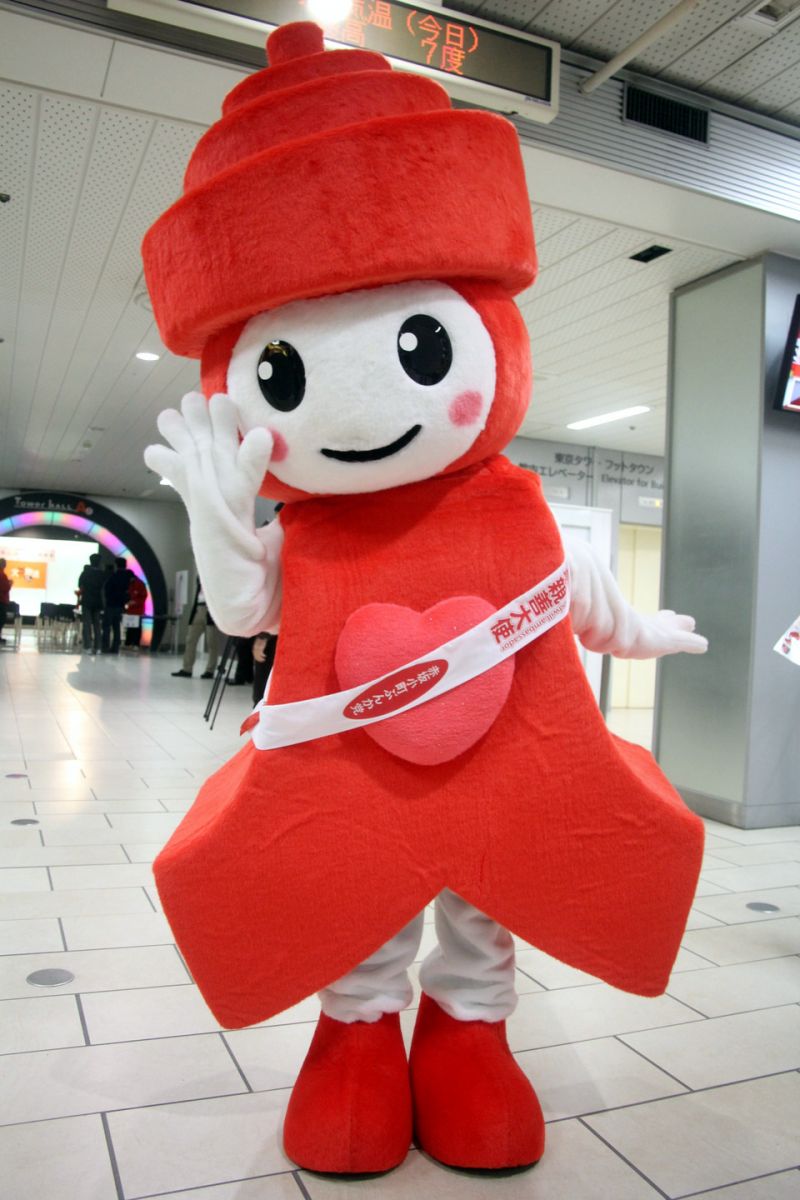 | 帽子が赤い坂道(赤坂)になっていて、体は赤坂の「A」と「人」をイメージ。 人懐っこい、好奇心旺盛な女の子。 女の子大好きスイーツやグルメ、ショッピング、ファッションに詳しい。 2012年3月に行われた赤坂親善大使リーダー総選挙で当選。 |