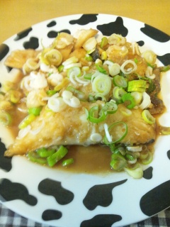 材料:タラ・ネギ・ポン酢・バター・塩こしょう・片栗粉・サラダ油