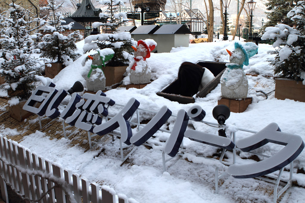前回紹介した雪ダルマのアップです。良く見ると親子ダルマですね。日差しが暑そうです。