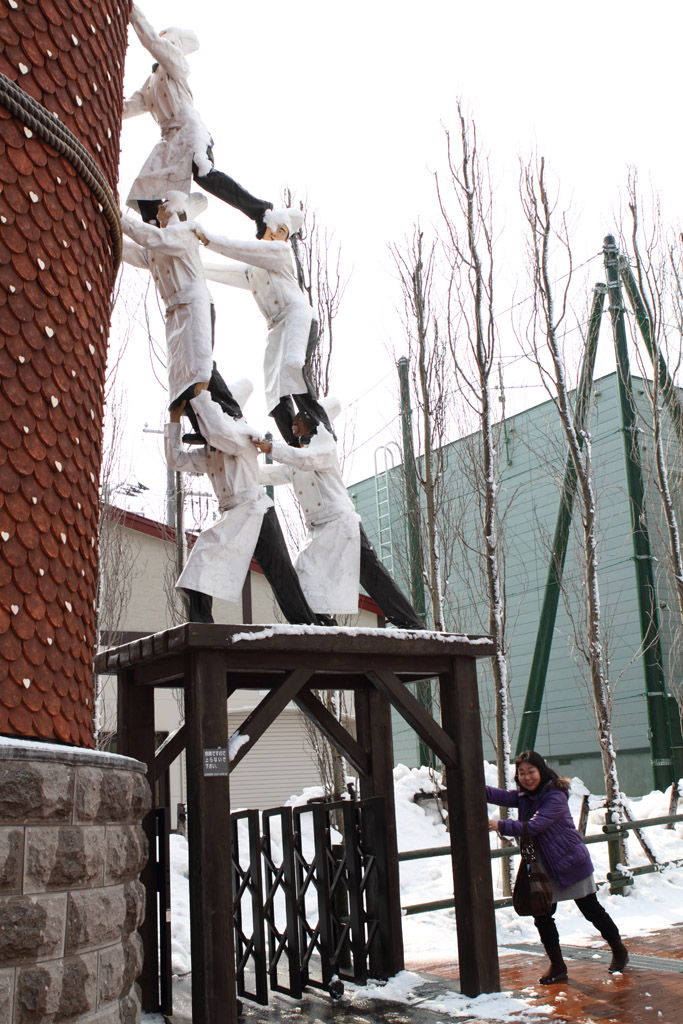 上記の写真と対になるのですが、こちらが押す人。どうも煙突を倒そうと頑張っているようです。