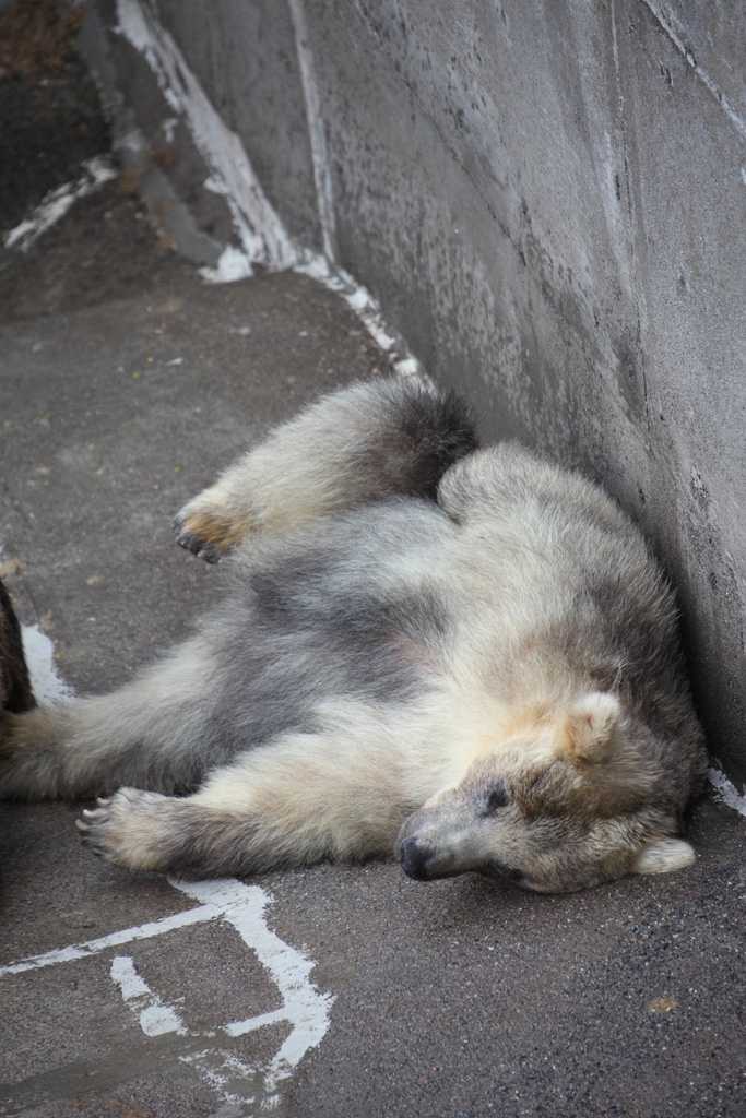 いよいよ生きた羆と御対面です。若い熊の牧場から見学します。若いといっても、十分に大型です。