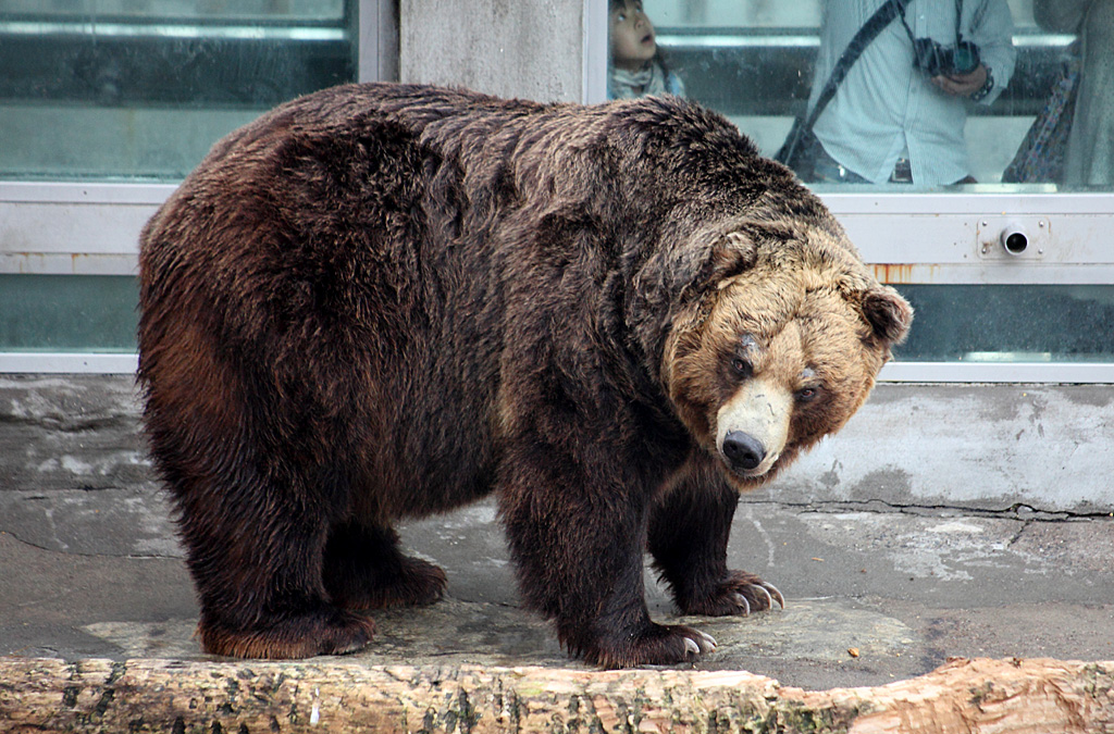 もう少し寄せてみました。腹回りにはたっぷりと脂肪がついています。そして顔が大きい。山の中では絶対に曹禺したくありません。硝子越しですが、距離20センチまで接近した見学ができます。
