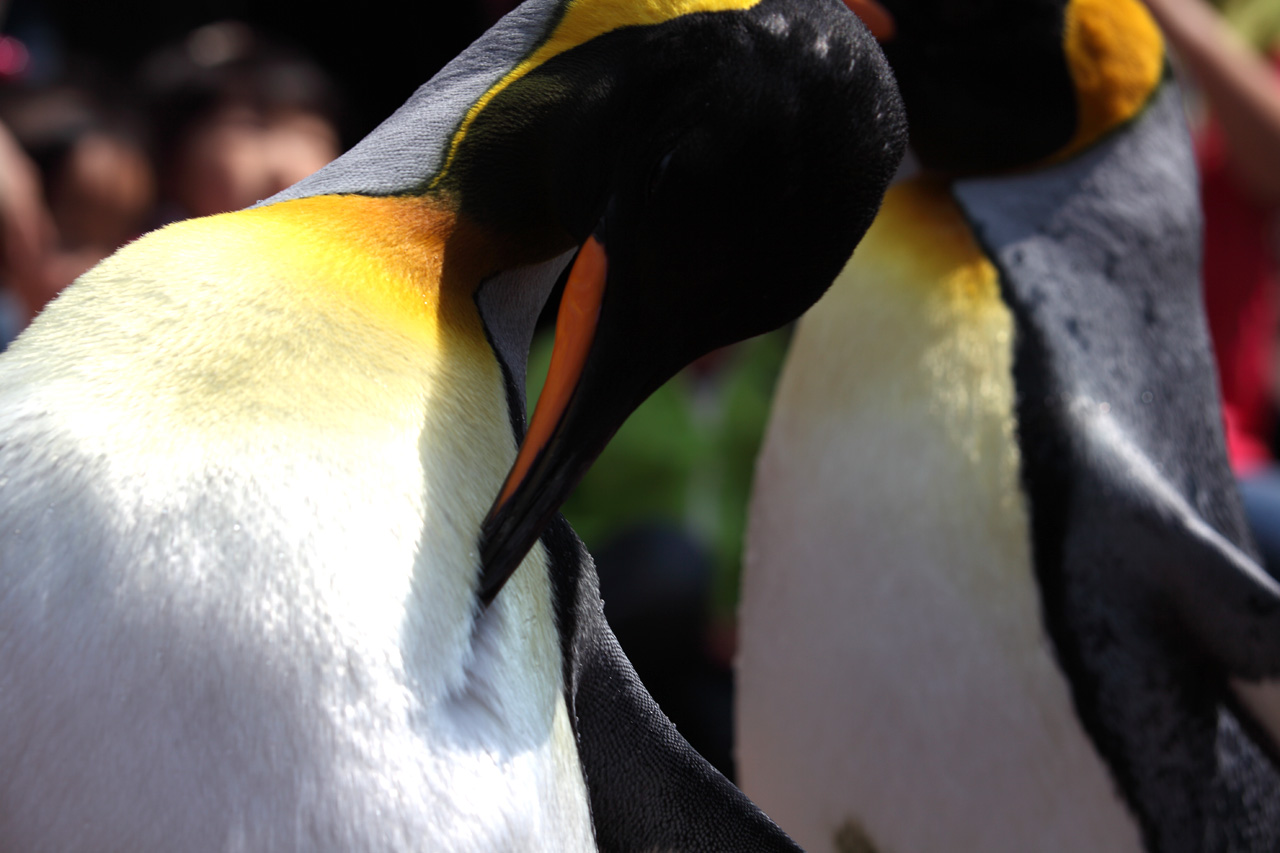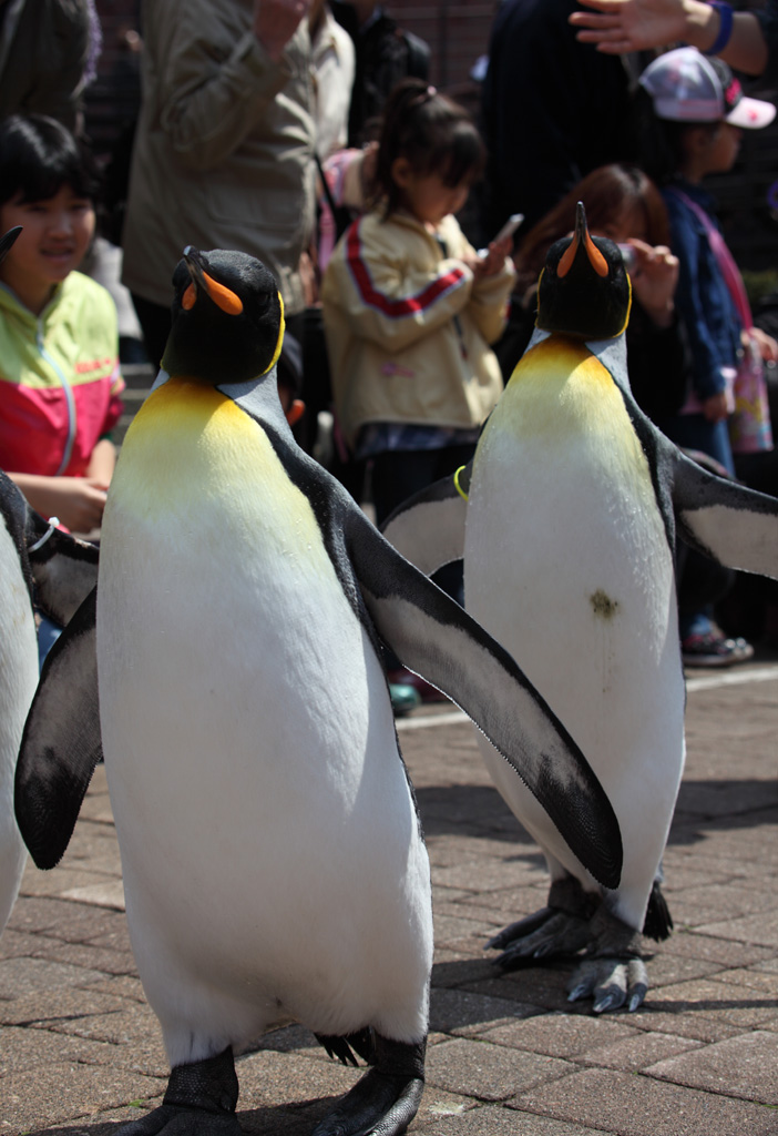 水族館を探していると、いつのまにかペンギンの散歩が始まりました。