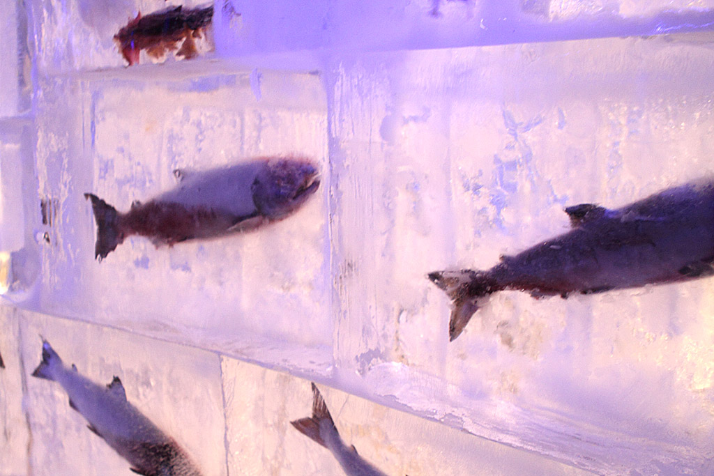 ドアを開けるとそこは氷の世界です。体は防寒をしていますが、口から入り込む息は胸を一気に冷やします。