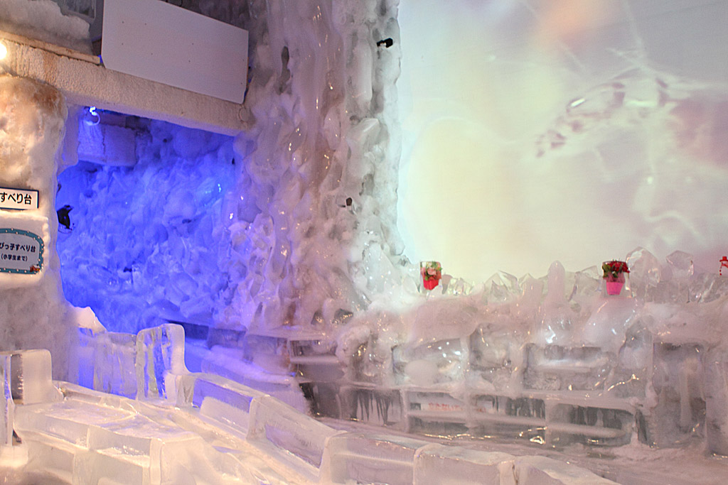 小樽の流氷館です。ここはマイナス20度前後の世界になっています。入場するには、防寒衣を着て入場します。中はコースになっていて、氷の滑り台などがあり、マイナス20度の世界を楽しむことができます。