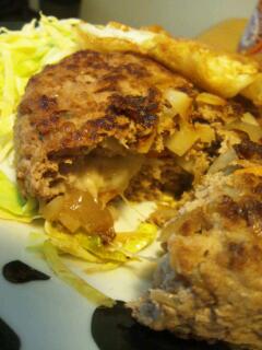 ○タネ−チーズ−タネ な感じで、先にハンバーグの