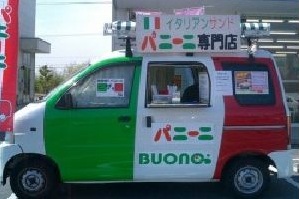 イタリアのサンドウィッチ、パニーニの移動販売車。斜めに付いたキレイな焼き目が食欲をソソリます。