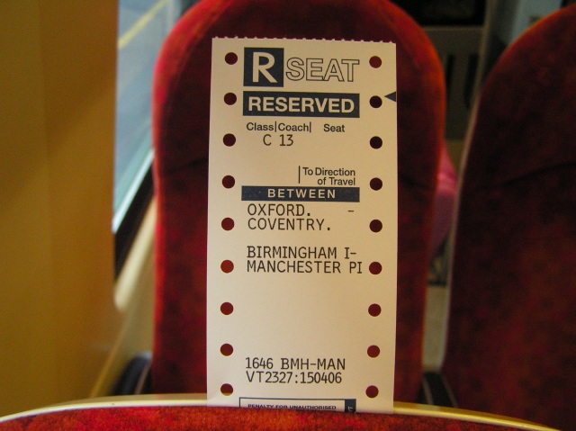 Reserved Reading - Coventry レディング―コヴェントリー間予約あり