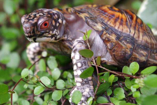 カロリナハコガメの中でも、飼いやすくて美しいことから人気が出てきているトウブハコガメ。