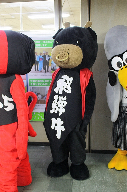 属性ゆるキャラ さるぼぼと牛のコラボ