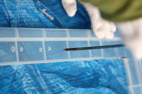 浮島を固定するためのバーをつけるために穴をあけます。