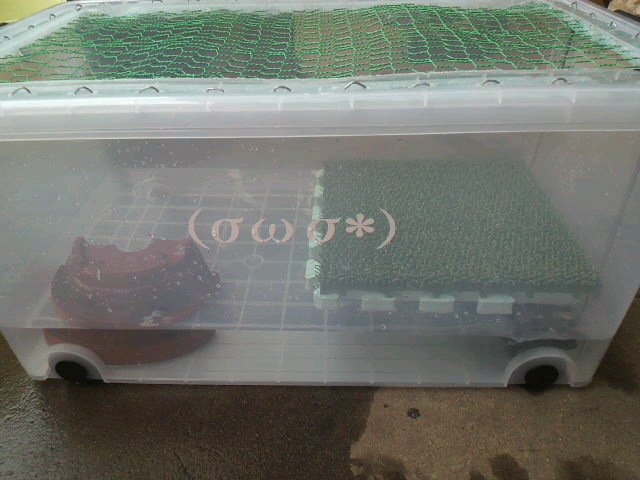 プラスチック衣装ケース、緑の金網、針金、お風呂のマット、人工芝!!