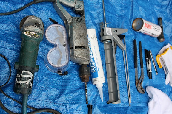 プラスチックを切る電動ノコとかドリルとかペンチとか・・・すごいフル装備!!