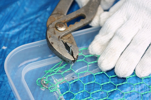 金網をあわせて大きさをみて、切り取ります。