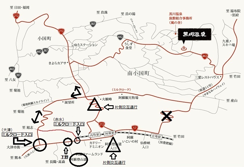また、「阿蘇山+黒川温泉」(国道57号「下野」から