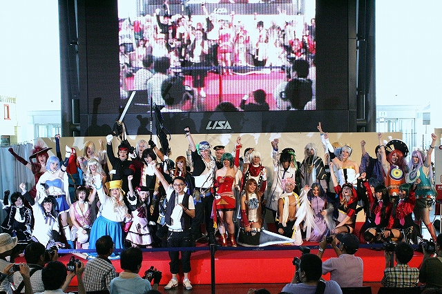全員で、「エイエイオー!」の勝どきを上げる各国代表コスプレイヤーの皆さん。