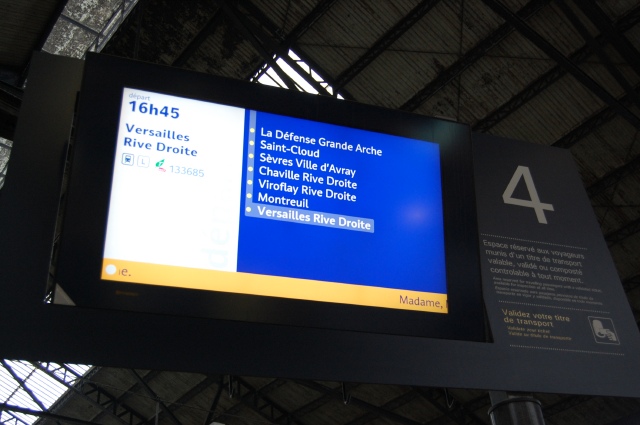 ここから、近郊電車TransilienのVersailles Rive Droite行きに乗り、