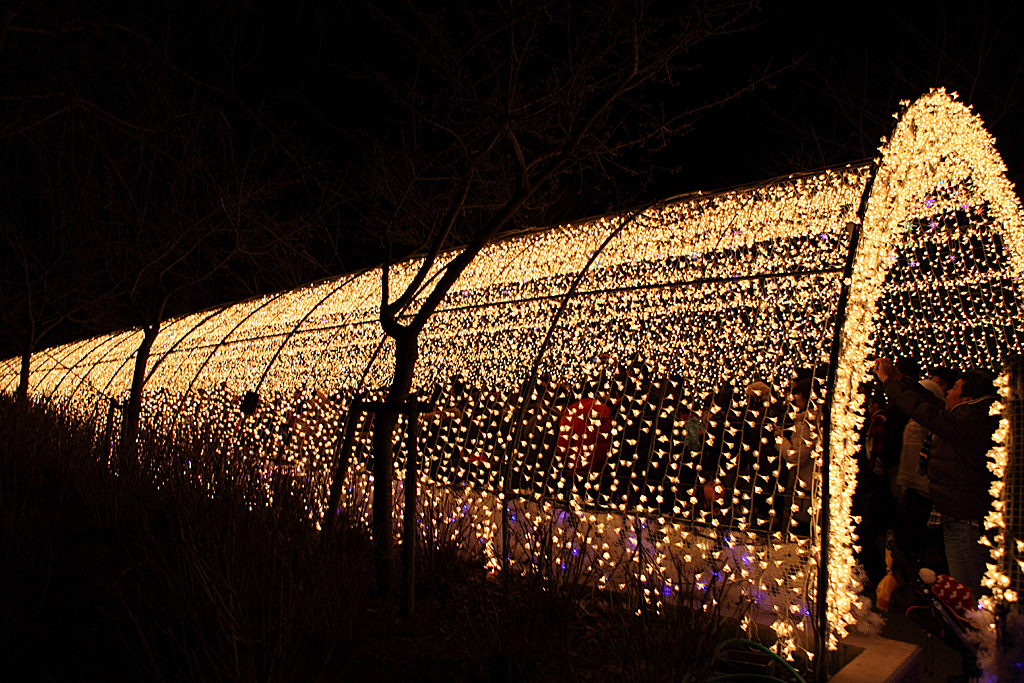 チャペル イルミネーション「ウィンターイルミネーション 冬華の競演(とうかのきょうえん)」は冬季に行われるLEDを使用したイルミネーションイベント。夕方になると多くの客で会場はごった返す。