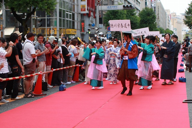 名古屋栄錦通のレッドカーペットを、徳川宗春道中の皆さんと、コスサミ世界代表の