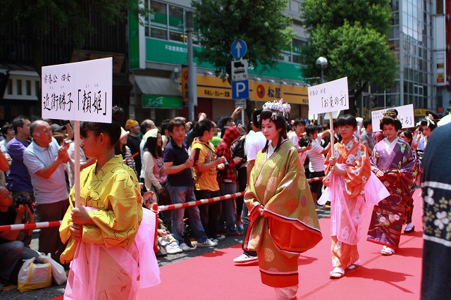 SKE48の皆さん3名、名古屋市のキャラクターはち丸くんが「徳川宗春道中」に登場。