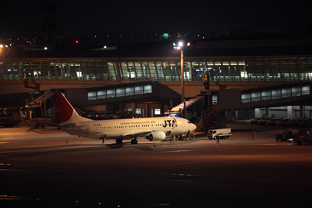 駐機中の飛行機の発光は弱く、光りを拾うのが大変です。帰ってきた飛行機の中は独特の安堵とその後の旅路があり、雰囲気的は大好きです。