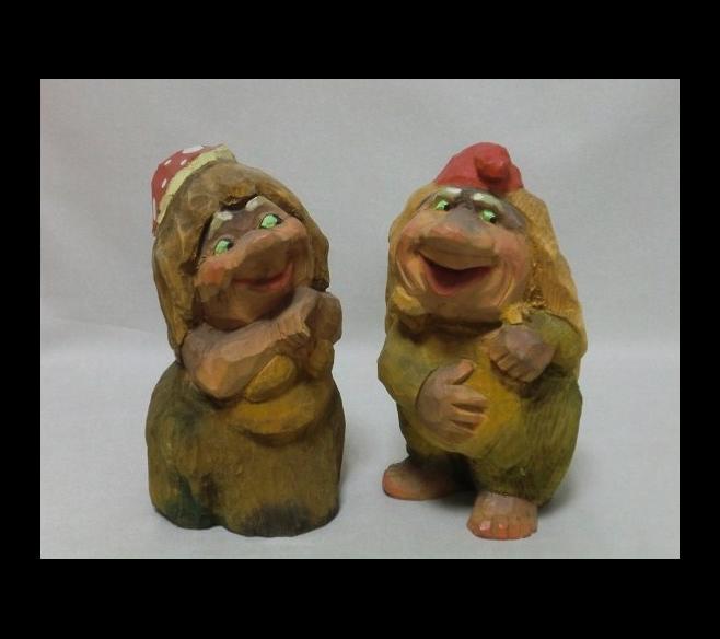 北欧ノルウェー 木彫りのトロール人形 男女ペア2体
