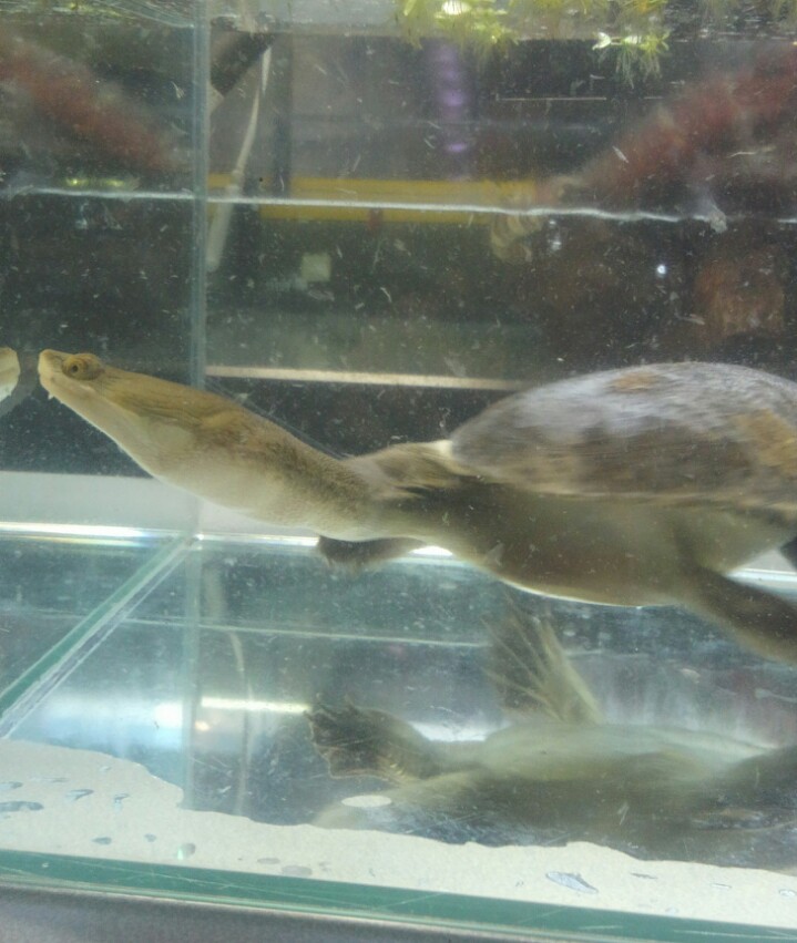 どちらも曲頸類の水棲ガメ。ショップではあまり会える機会がないため貴重は出逢い。