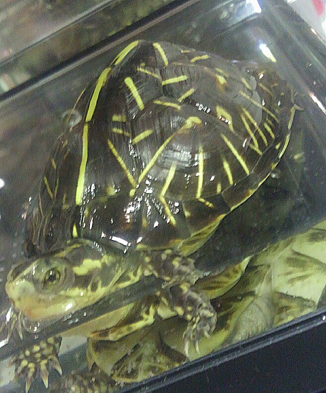 マレーハコガメも、サイドの蛍光色がカラフルですよね。顔の表情はセマルにも少し