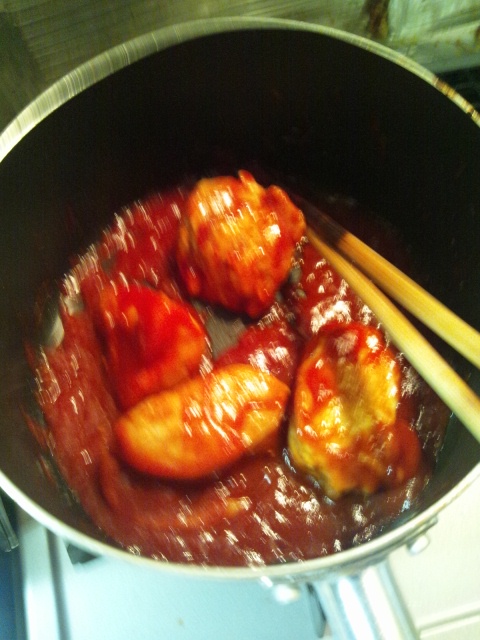 | 3 ちょっと写真がぶれちゃってすみません。 両面に焼き色が付いたら、 塩コショウ・ケチャップ・オイスターソースを かけたら完成です♪ | |