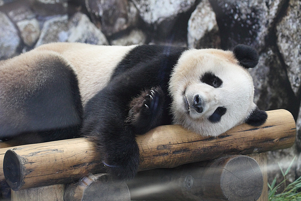 大人のパンダです。こうなってくると、ほとんど熊です。白黒が分かれているのでパンダなのですが、近くによってみるとやはり熊です。