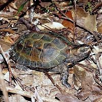 リュウキュウヤマガメは沖縄本島北部のやんばる、渡嘉敷島、久米島のみに生息する。甲羅の長さは約15センチ。1975年に国の天然記念物に指定され、捕獲が禁止されている。近年は開発のため生息域が狭まり、絶滅が懸念されている。