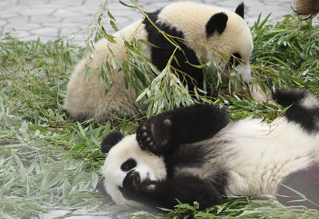 パンダは一回の出産で二頭ずつ子供を産みますが、親パンダが育てるのは発育が良い1頭だけです(野生では)。ですが人間が、赤ちゃんパンダを毎日交互に交換して親パンダに渡すと、1頭づつ育てていくそうです。その間もう一頭は人間が育てるという荒業で、双子のパンダはすくすくと育っていっているそうです。