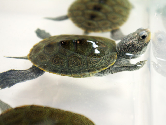 日本への輸入がもっとも多い亜種。ダイヤモンドガメの中ではもっともよく見かけます。