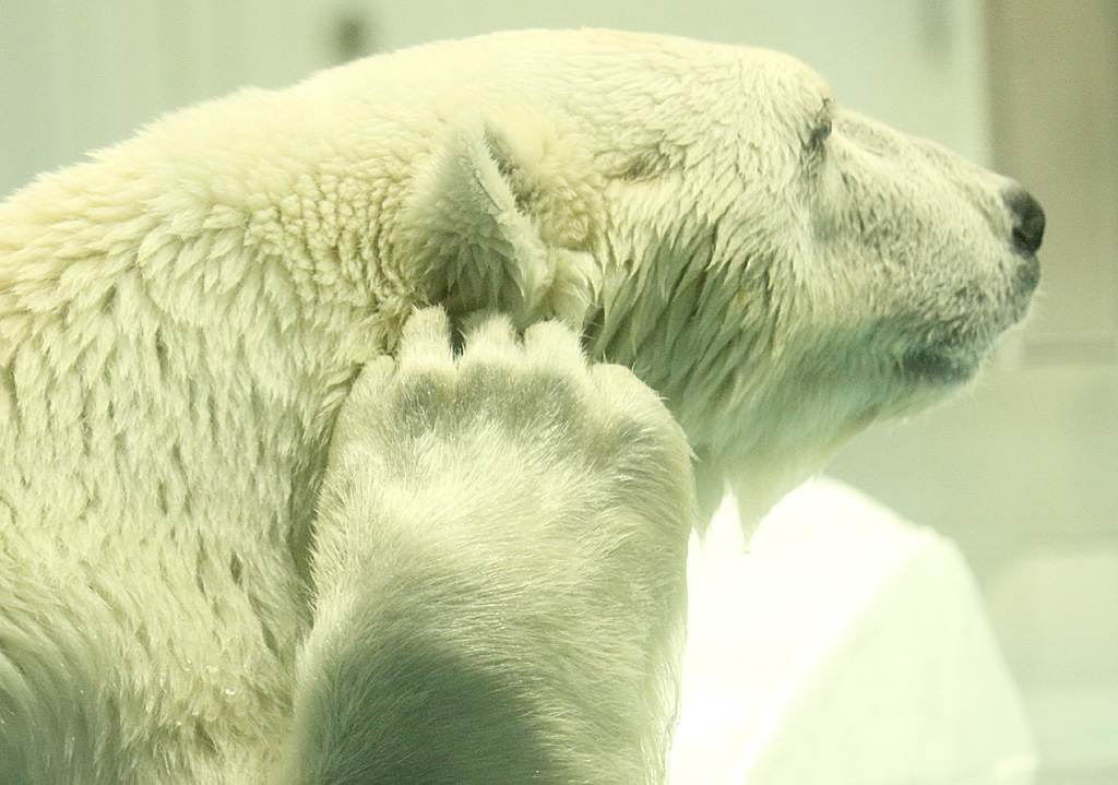 「でも、さぼると北極に返されてしまうからなあ・・、いまさら自然に戻ると寒いし餌とるのめんどいから なあ〜ここの方が楽だし・・」