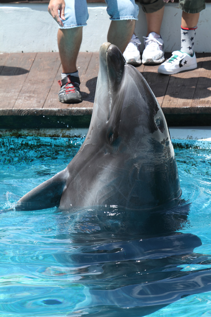 子供達には一生の思い出になるでしょうね。イルカと人間がこうしてふれあい互いに生きているということを実感するような一枚です。