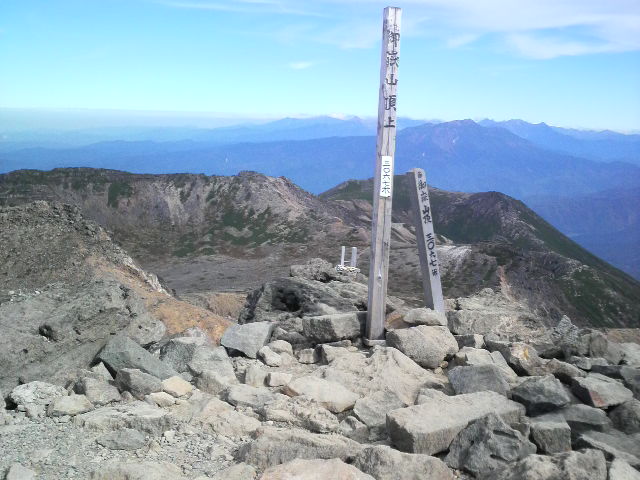 6:30に登山開始、9:10御嶽山頂剣ヶ峰に到着、御嶽神社奥社に登拝しました。