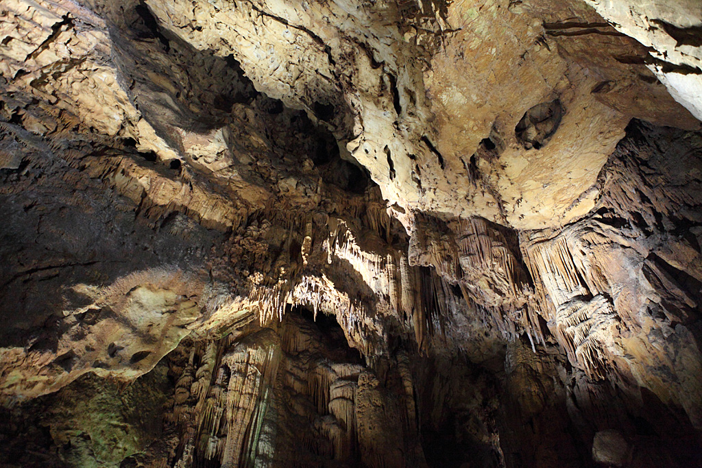 長淵付近千畳敷:幅80m、長さ175m、高低差35mの、日本第2位(現存では第1位)の巨大な洞内空間。観光路は数万年前に生じた大規模な落盤層の上を登っている。