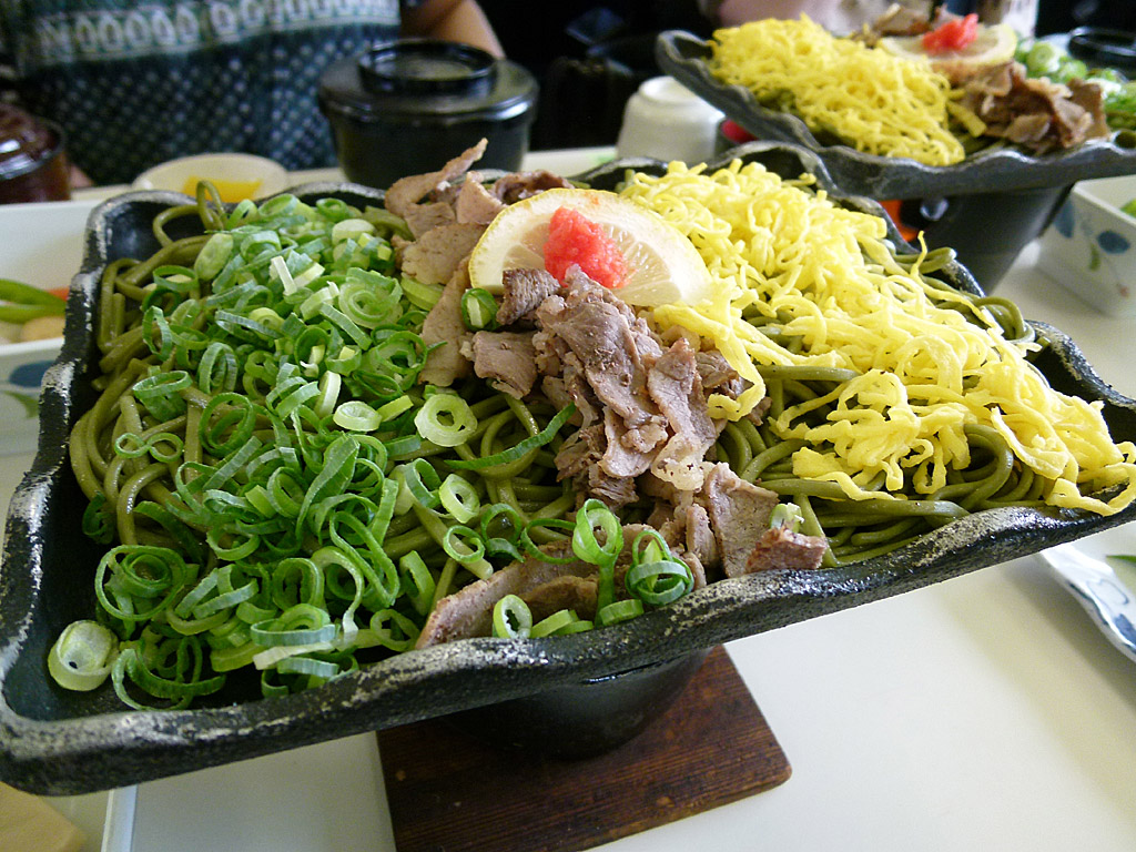 山陰地方名物の瓦そば。瓦の上に日本そばを乗せて肉、錦糸玉子ねぎ、つゆをかけます。そしてしたから焼きます。焼きそばなのか何なのかは分からない食べ物ですが、意外とおいしいです。ボリューム感を出すためにコンパクトデジカメで撮影をしてみました。