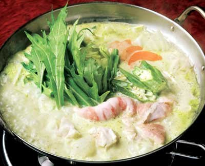 クリームスープにバジルの香り漂う、まるでポタージュスープのような鍋『バジルクリーム鍋』!!(1480円・注文は2人前〜)