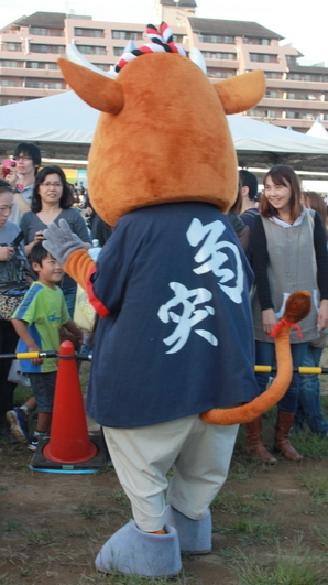 国指定重要無形民俗文化財「牛の角突き」の闘牛がモチーフ。勝負を仕切るときの掛け声「よしたー」が名前の由来。