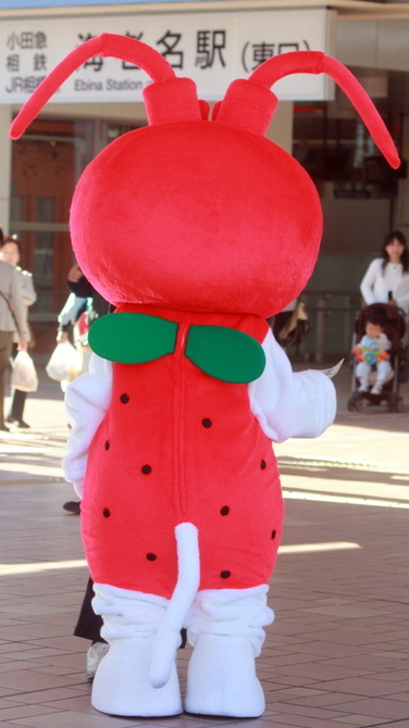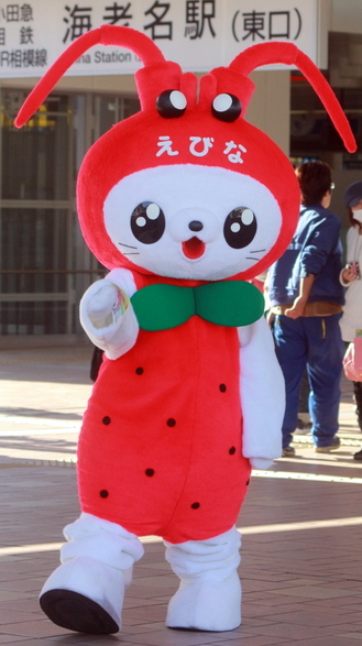 | 2011年2月に誕生。海老名の「エビ」と特産の「いちご」と猫の融合。 市制40周年を機会に誕生した。 |