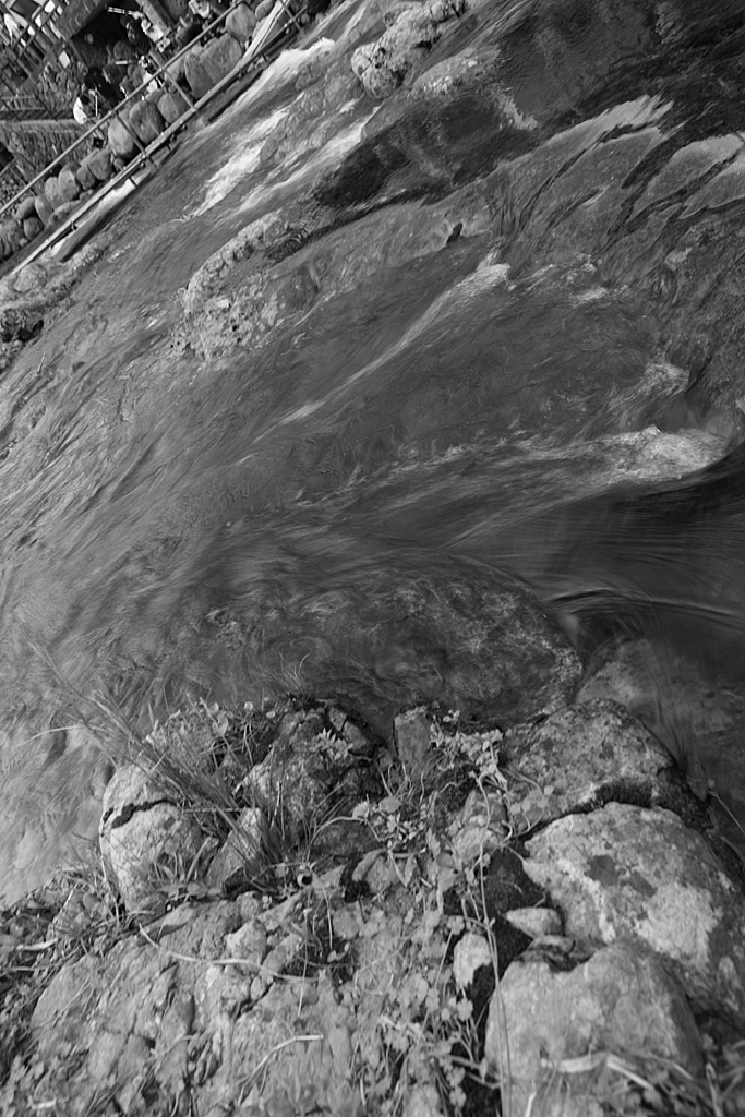 急転直下がイメージです。ジェットコースターが落ちるようなイメージでかなり角度をつけて撮影しています。SSを遅めにして流れのスピード感を表現。モノクロ処理し、カラーとは異なったイメージを付け加えています。写真2との組み写真となっています。